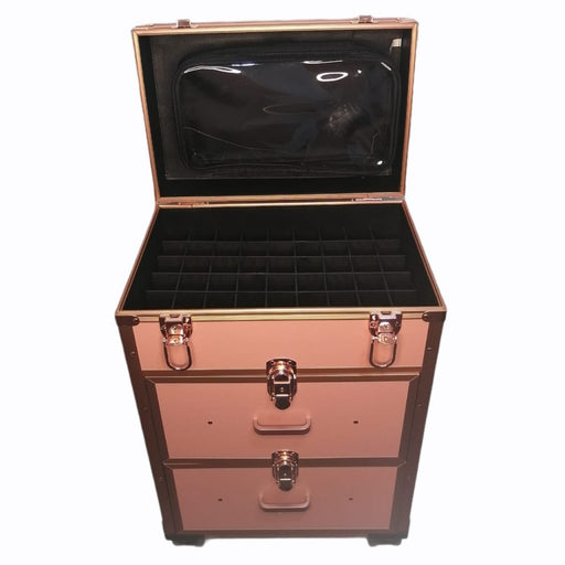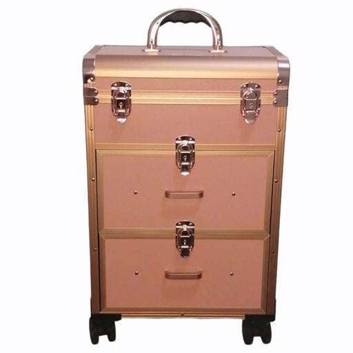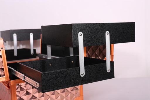 MagickurMaleta Organizadora Sara Rosa Gold Estructura personalizable 4 en 1: sección superior con 4 bandejas telescópicas, se puede utilizar como un pequeñ...