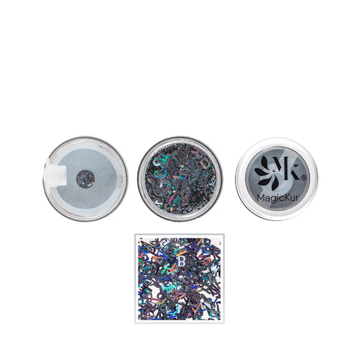 MagickurSon pequeñas partículas en forma de letras que se pueden colocar en el espacio que tenga la extensión de la uña o en el area que desees.